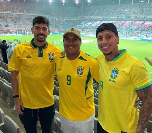 雷速體育10月11日宣 昨晚,巴西隊在韓國首爾進行的友誼賽中以5-0大勝韓國隊。而效力于山東泰山的巴西籍外援克雷桑、馬德魯加均來到現(xiàn)場觀看了這場比賽。