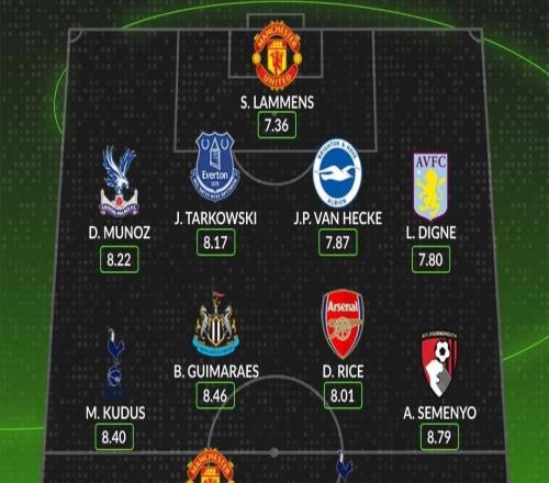 外媒評英超第7輪最佳陣容:曼聯(lián)、熱刺兩人入選,賴斯在列